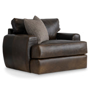 The Cameron leather swivel chair invites comfort with its deeply padded, oversized arms, rounded corners and plush cushions. The roll-top back pillow boasts deep 4-inch boxing on the sides. And a swivel base provides a smooth 360-degree view.