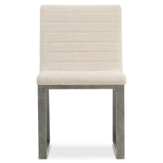 Clean lines and simple modern shapes combine for an urban design in the Tribeca side chair. A horizontal channeled seat is balanced on an angular frame in textured aluminum. The result is a chic and casual look for a contemporary style.